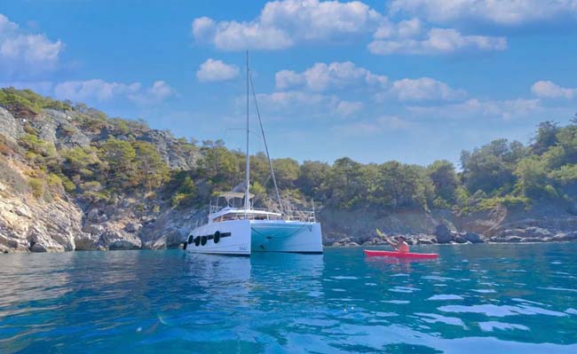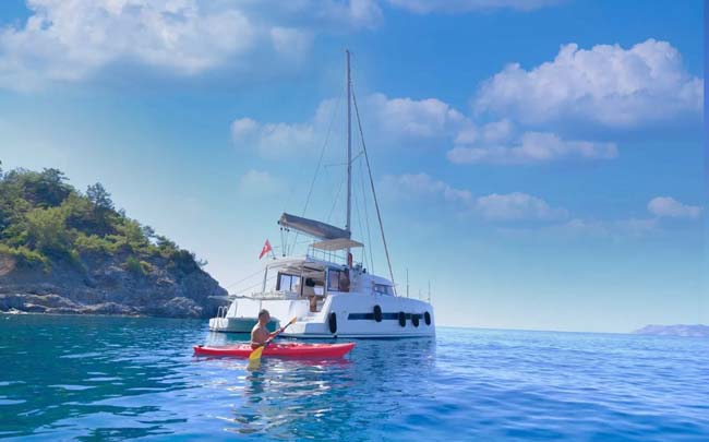 Bali 4.1 model olan My dreams Catamaran 12,5 metre boyunda ve 7 metre enindedir.. My dreams Bali 4.1 catamaran da 4 Double kabin bulunmaktadır. Toplamda 4 adet kabini bulunan My dreams katamaranı, maksimum 8 kişiye kadar mavi yolculuk ve yat kiralama hizmeti sunmaktadır. Fethiye limanına kayıtlı olup,Fethiye ve Göcek bölgesindeki koylarda misafirlerimize mavi tur ve tekne kiralama imkanı sağlamaktadır. 2x45 Hp Yanmar gücünde ana makinası mevcuttur.Mavi Yolculukda misafirlerimize konforu, lüksü ve huzuru bir arada yaşatan bu yatımız maksimum 9 knot deniz miline erişmektedir. Teknemizde tam donanımlı mutfak,tüm misafirlere yetecek güneşlenme minderleri.tv,wifi,jeneratör,kano mevcut olup mavi yolculuk tekne tatiliniz için her detay düşünülmüştür. Tekne tatili öncesinde tekne kaptanımız size ulaşarak alışveriş listenizi birlikte planlamaktadır. Catamaranda aşçı hizmeti yoktur. Misafirler tekne mutfağında yemeklerini hazırlayabilir yada yanaşılan koylardaki restoan işletmelerden yararlanabilirler.Aşçı isteyen misafirlereimize dışardan günlük ücrete tabi olmak kaydı ile temin edilebilir. Sevdikleriniz ve aileniz ile birlikte muhteşem anılar biriktireceğiniz bir tekne tatili için bize ulaşmanız yeterlidir. Doğru analiz ,doğru tekne ve doğru hizmet , misyon anlayışı ile çıktığımız yolda,sizlere tekne kiralama sektöründe hizmet vermekten mutluluk duyarız.