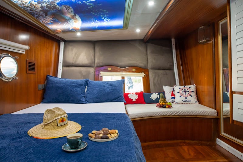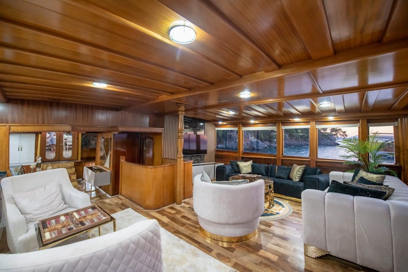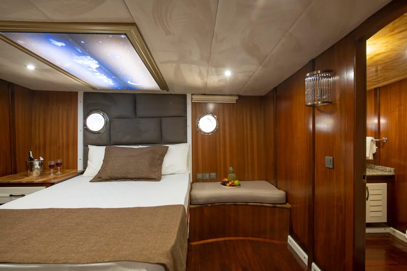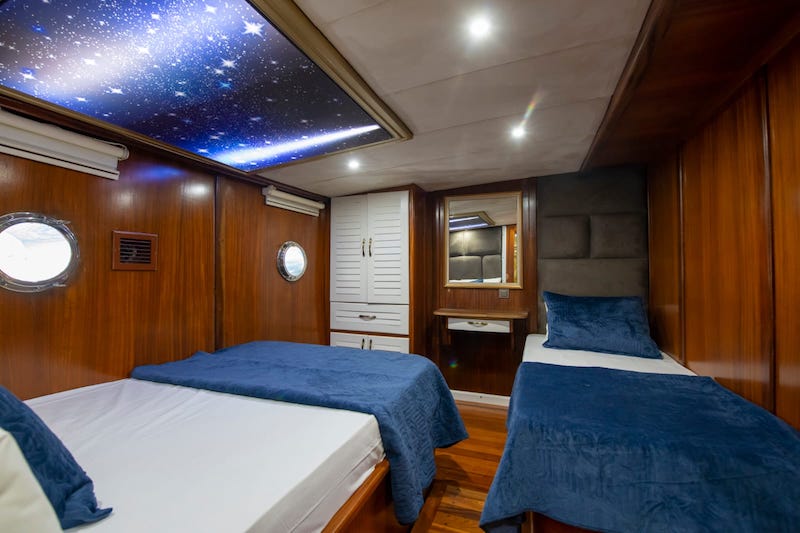 8 kamaralı tekneler arasında açık ara daha geniş kamara ve güverte yaşam alanları sağlayan lüks mavi yolculuk teknemizde sizlerin keyifli zaman geçirmesi için çabalayan 6 kişilik mürettebat bulunmaktadır.