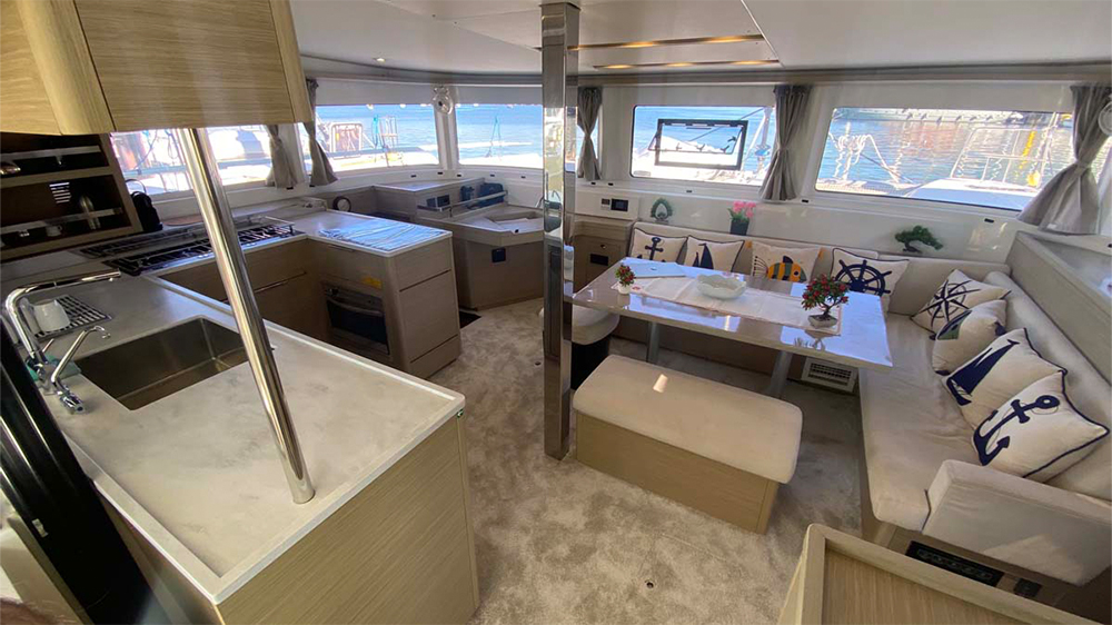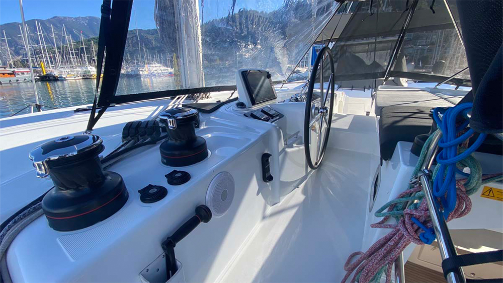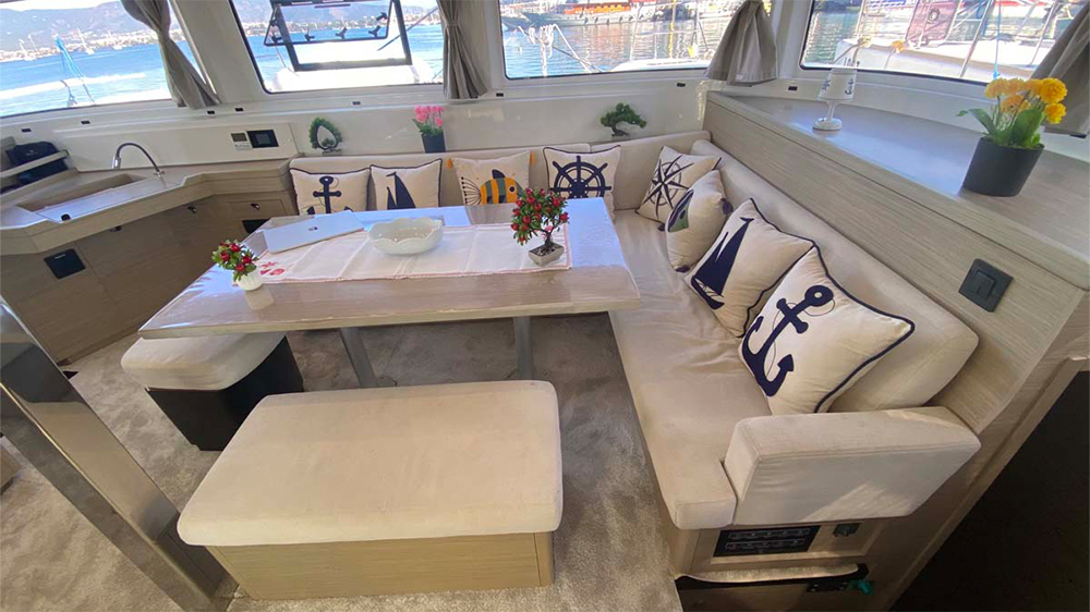 2024 model New Lagoon 46, Fethiye'nin eşsiz koylarında unutulmaz bir tatil deneyimi sunuyor. 5 kabin ve 5 tuvaletiyle geniş ve ferah bir yaşam alanı sağlayan bu 13.99 metrelik catamaran, klima ve ısıtma sistemiyle her mevsim konforu garantiliyor. Flybridge üst güvertesi, panoramik manzaralar eşliğinde dinlenme ve eğlence imkanı sunarken, su yapıcı sistemi ve tam donanımlı fırınıyla denizde ev rahatlığını yaşatıyor. Maksimum 9 kişilik kapasitesiyle arkadaş grubunuz veya aileniz için ideal bir seçim.